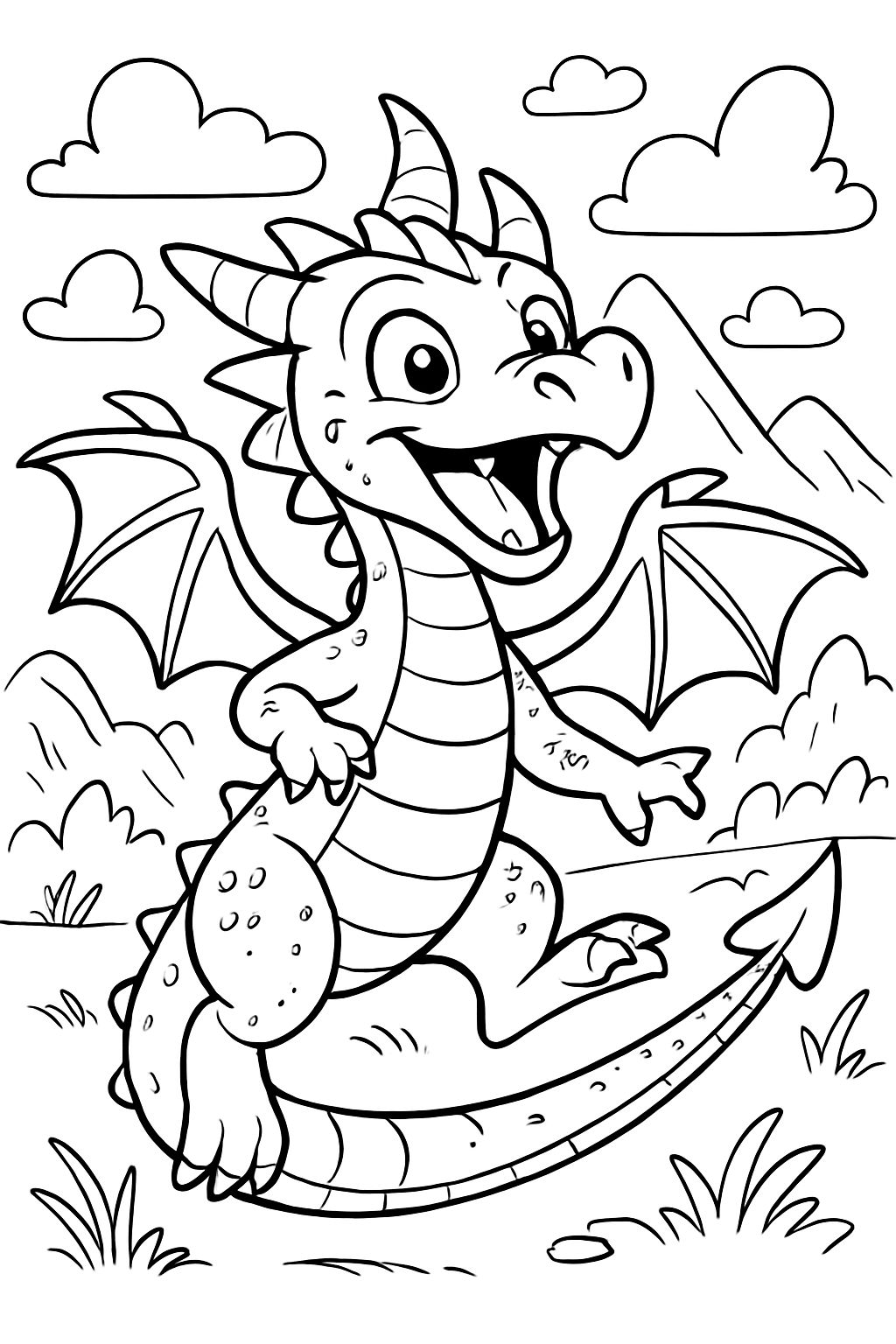 Entdecke unser kostenloses Ausmalbild 'ein süßer Drache' zum Ausdrucken. Mit KI erstellt und perfekt für kreative Momente - ob zu Hause, im Kindergarten oder in der Schule. Schnapp dir die Buntstifte und los geht's!
