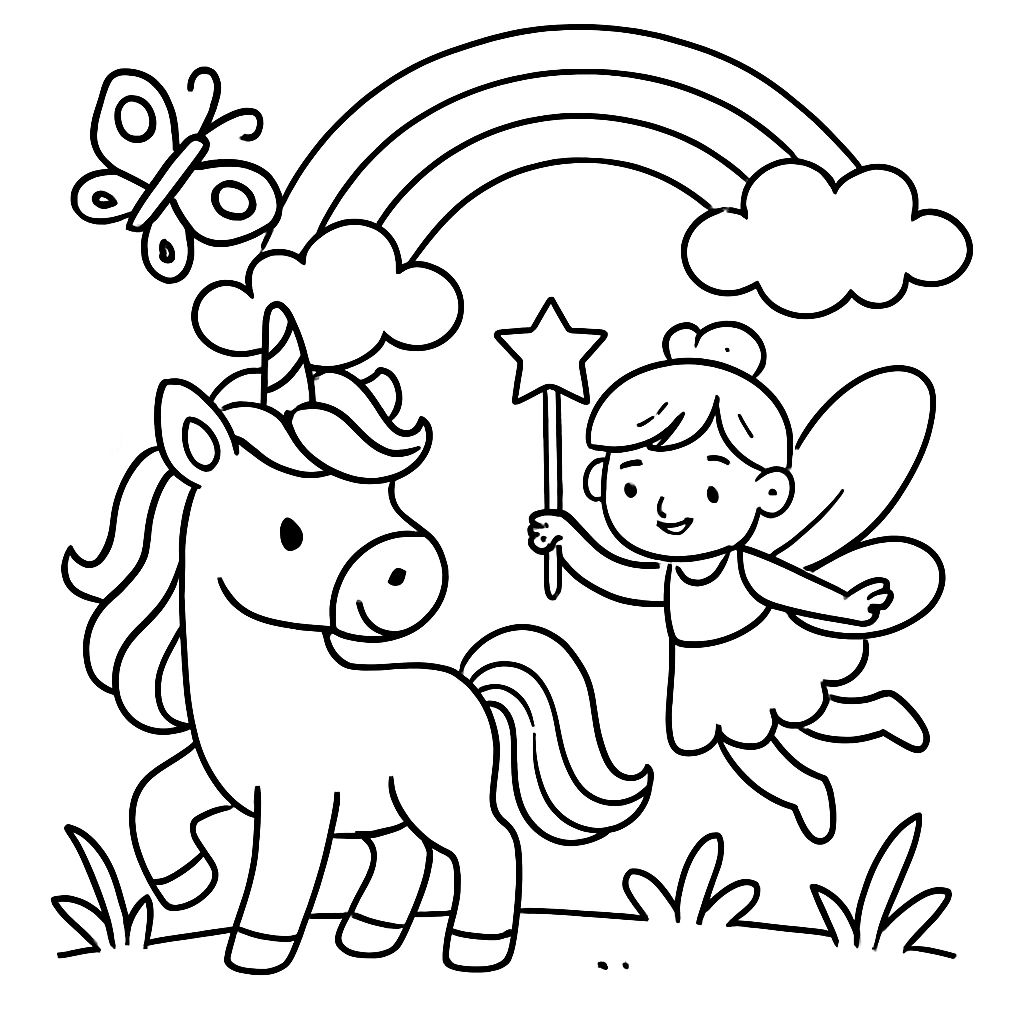 A unicorn in front of the Eiffel Tower, perfect for kids to color.