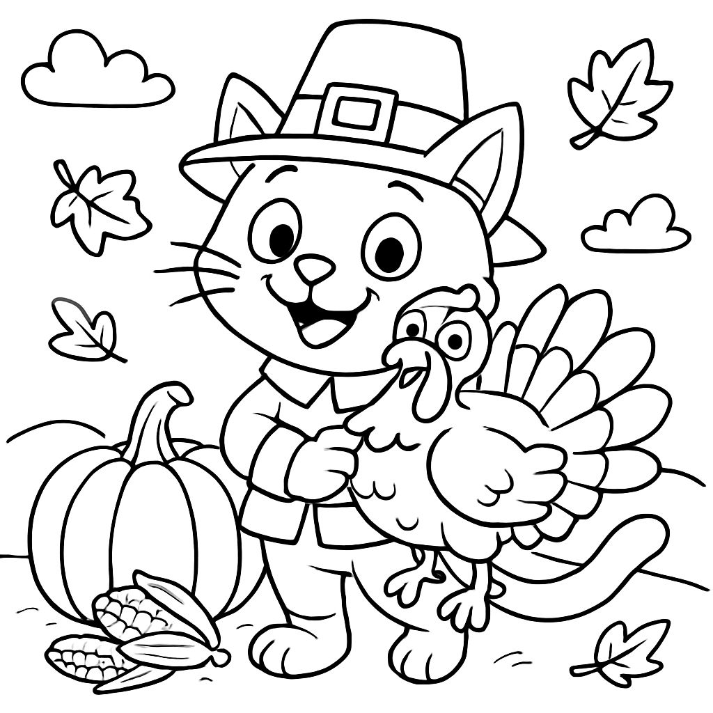 A tabby cat and a Chesapeake Bay Retriever are together inside. This is a fun and friendly scene for a coloring page.