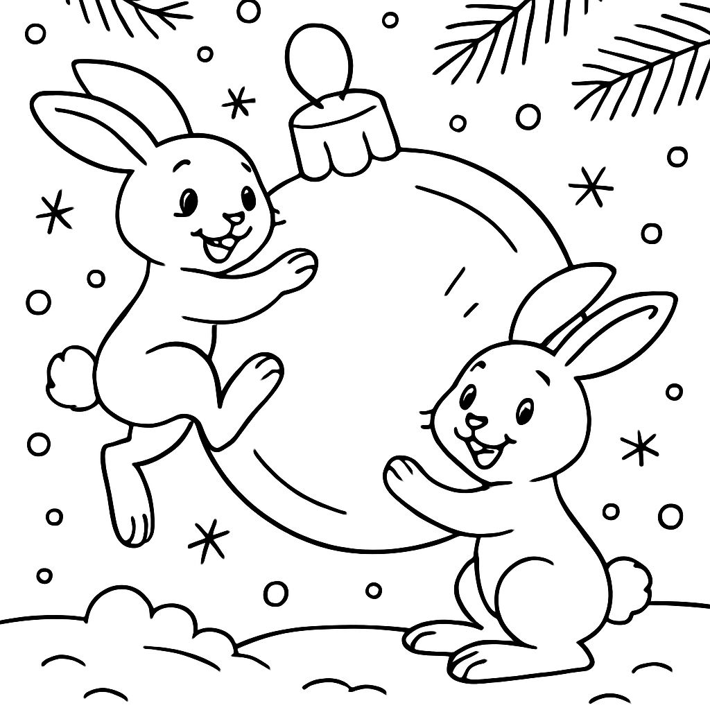 A Christmas ornament with a picture of 2 rabbits on it