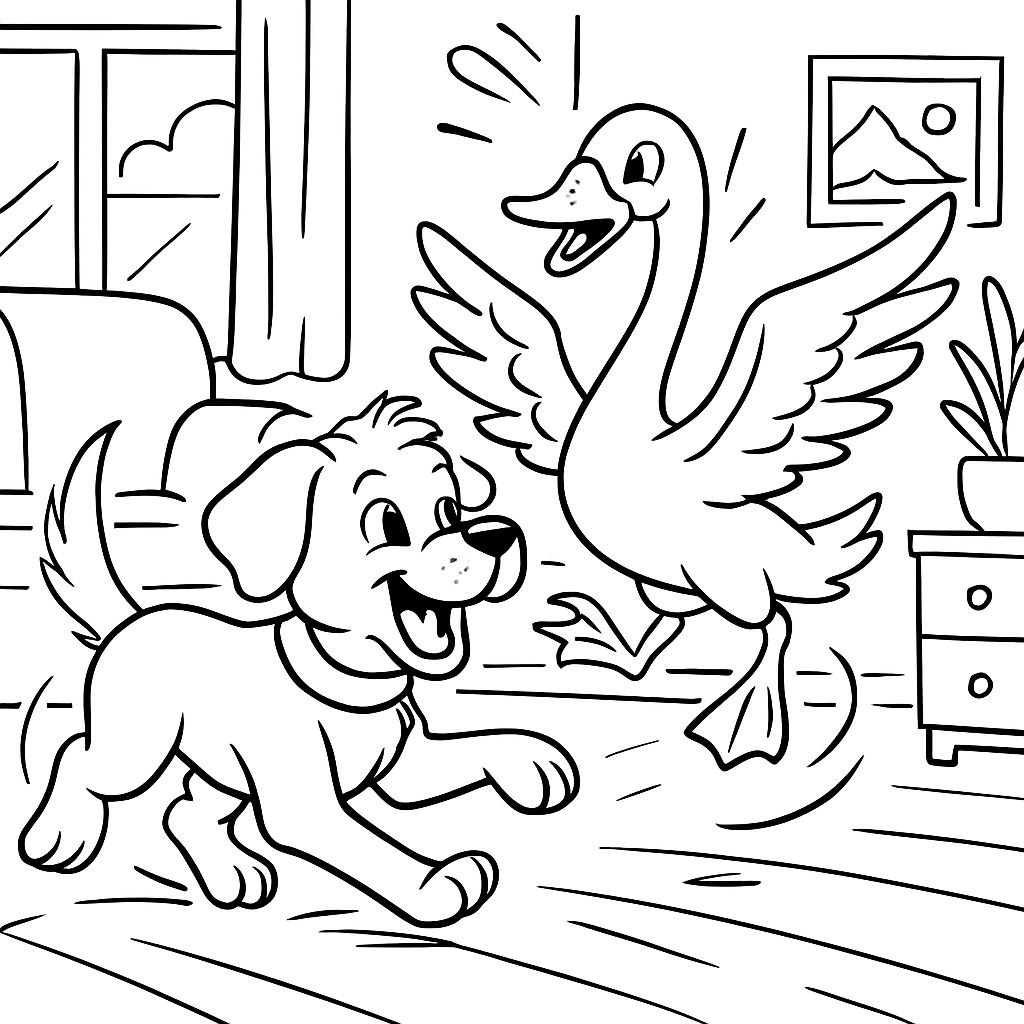 Un topo divertido enfrentando un pequeño contratiempo - algo poco probable sucede cuando le hacen caca en la cabeza. Esta escena ofrece una oportunidad humorística para que los niños coloreen e inspiren sus propias ideas creativas.