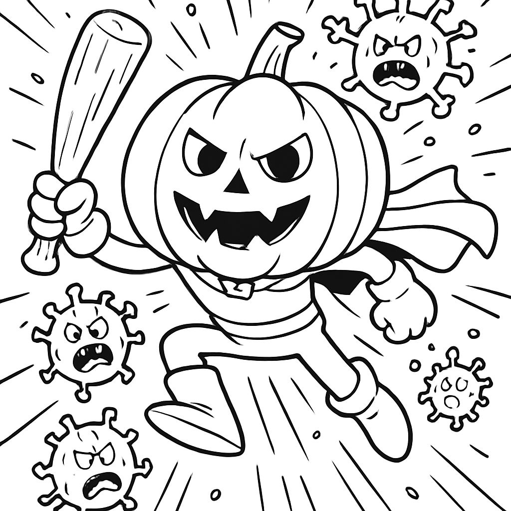 un arbre perdant ses feuilles avec des citrouilles et des champignons à ses pieds