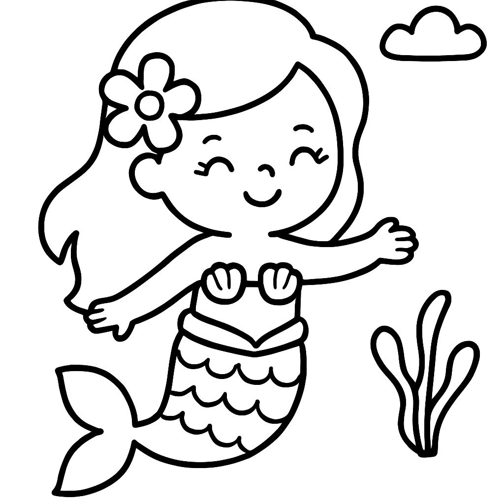 Une sirène dans un monde sous-marin coloré avec un récif de corail et de nombreux poissons joyeux.