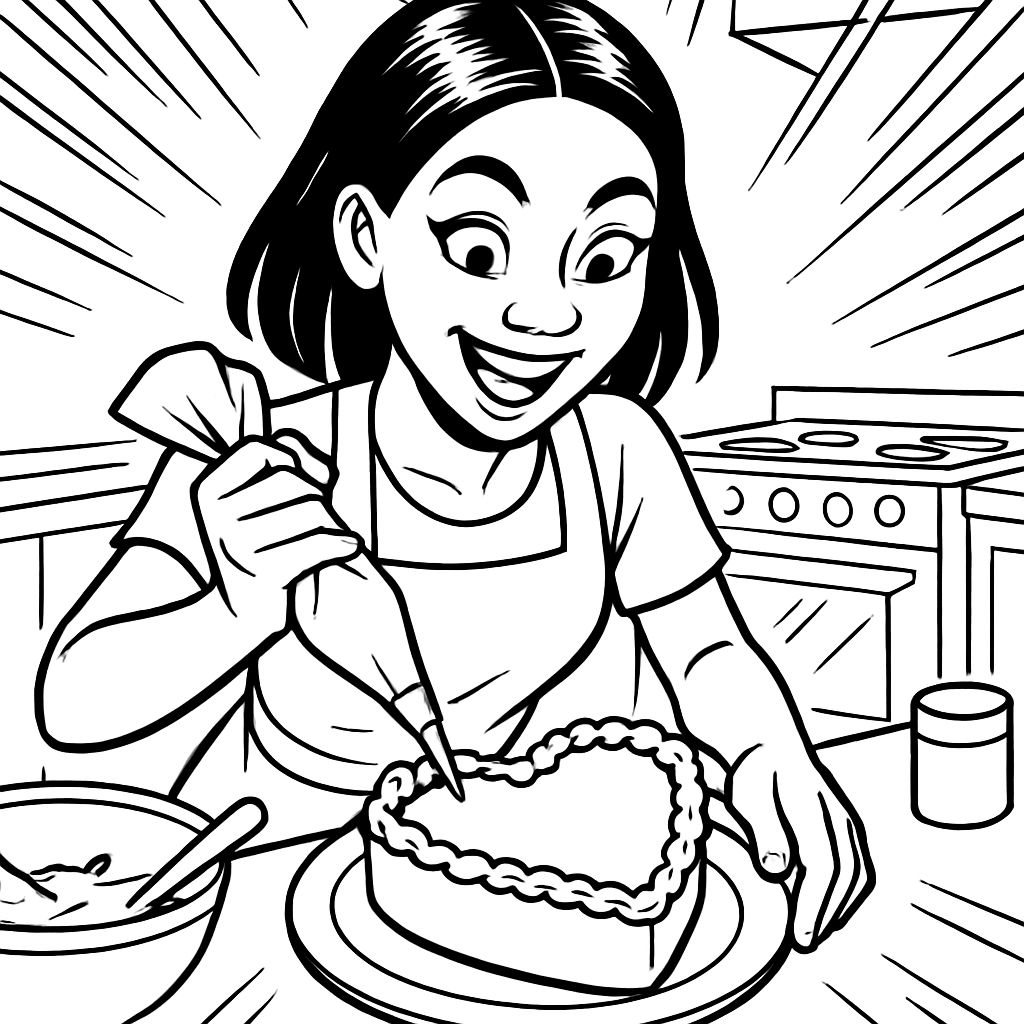 MULHER AFRICANA-AMERICANA COM CABELO LISO E DIVIDIDO NO MEIO FAZENDO UM BOLO EM FORMA DE CORAÇÃO