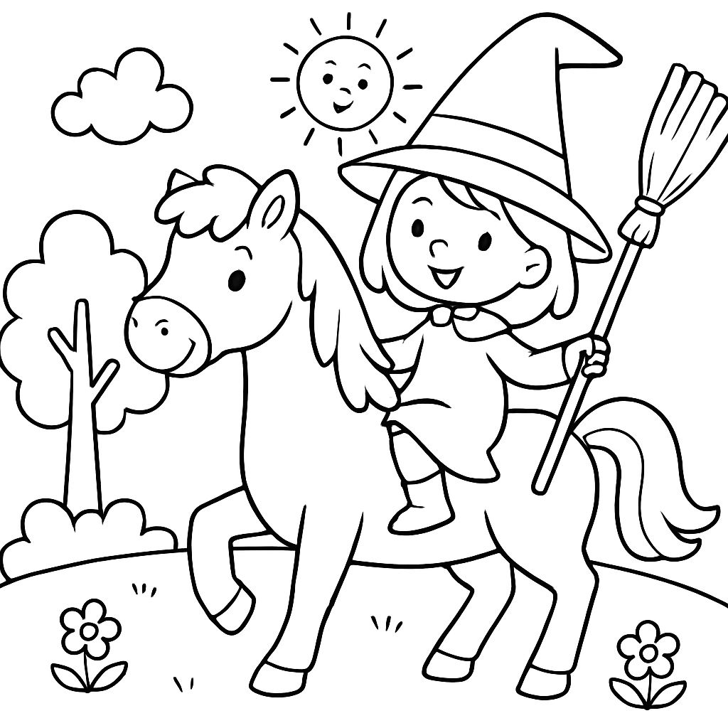 Um pôr do sol com cavalos, perfeito para uma página de colorir pitoresca.